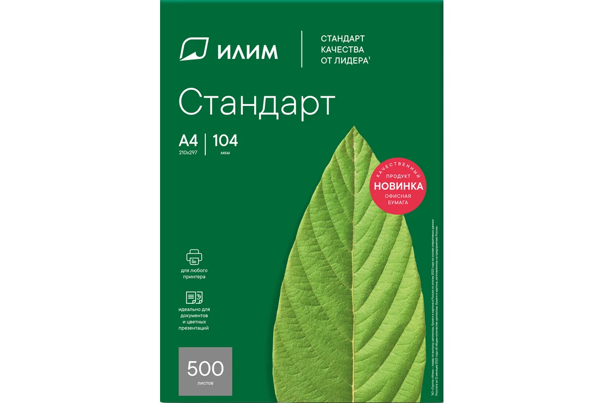 Бумага офисная Стандарт Илим 104 мк 500л (белая)