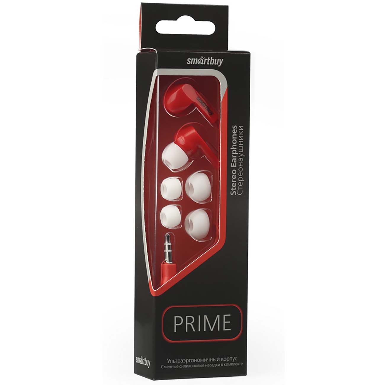 Внутриканальные наушники Smartbuy PRIME, динамики 10мм, плоский каб, красный 3 пары (SBЕ-130)